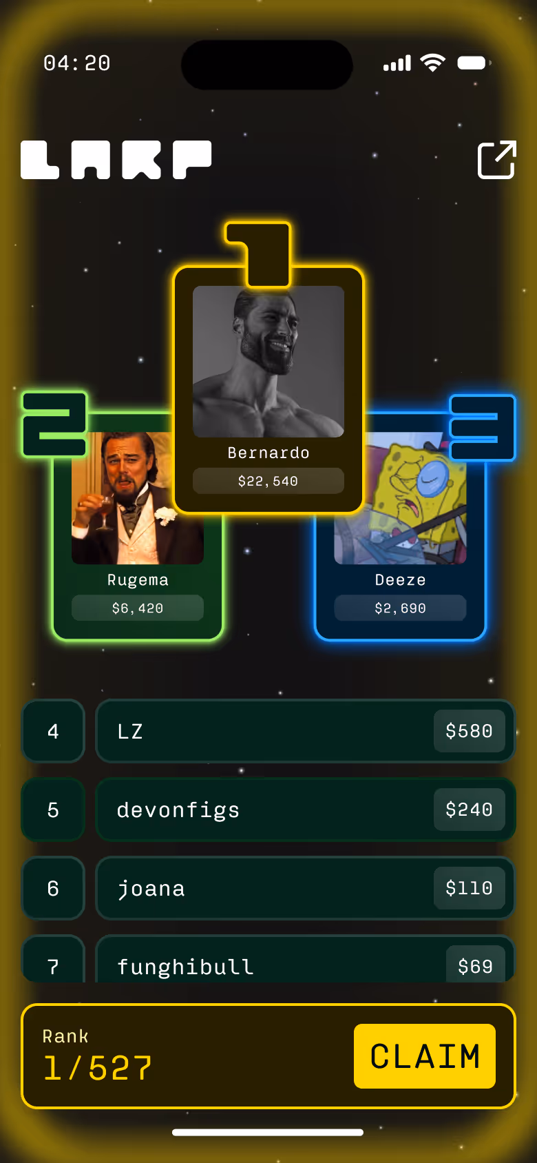 Welcome to LARP, the weekly fantasy crypto game. Draft your bag and hodl for glory.